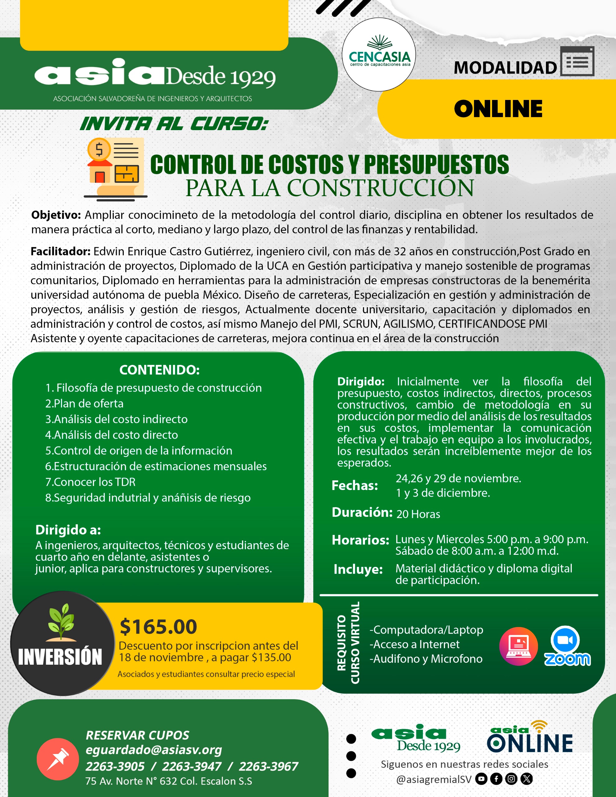 Cuenta con descuento por inscripción hasta el 18 de noviembre, a pagar $135.00