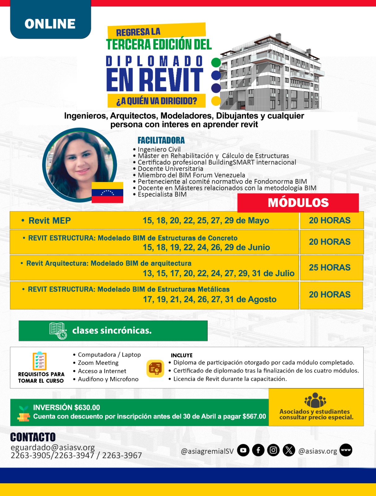 DIPLOMADO EN REVIT 2026 por Educación Continua | Mar 10, 2026 Current Status Not Enrolled Price Closed Get Started Take this Course Ficha de Inscripción: https://forms.gle/ixTjqDnRPMSKCafv9