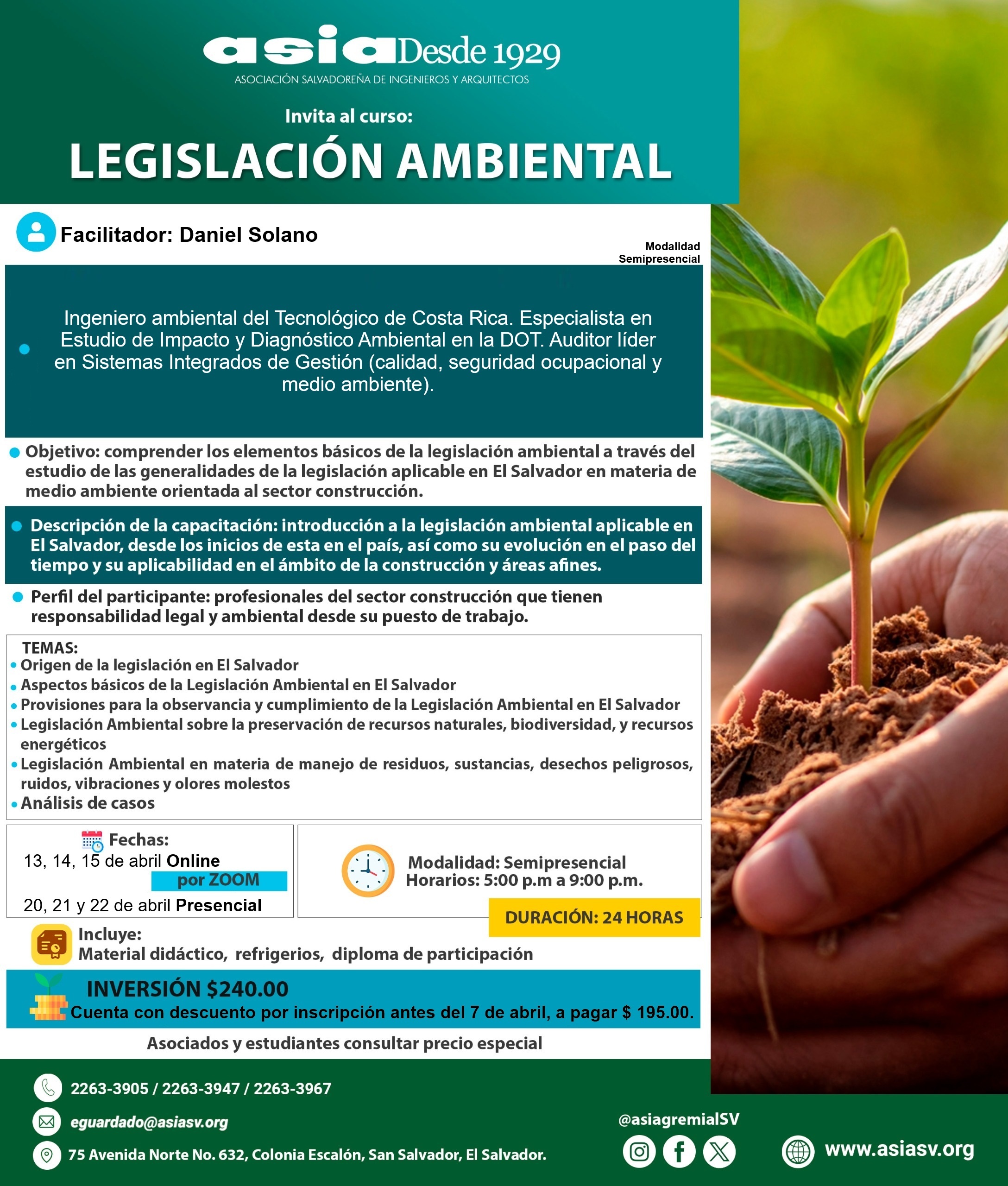 Cuenta con descuento por inscripción antes del 7 de abril, a pagar $195.00