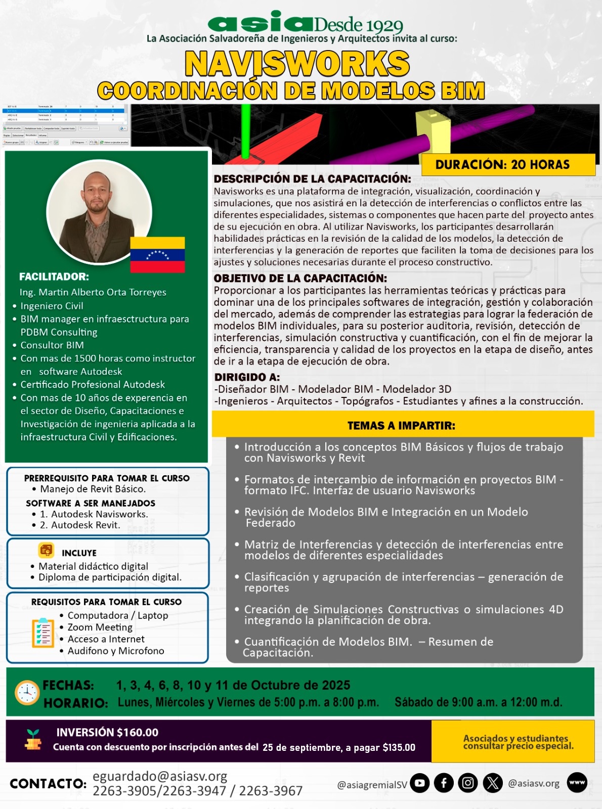 Cuenta con descuento por inscripción antes del 25 de septiembre, a pagar $135.00