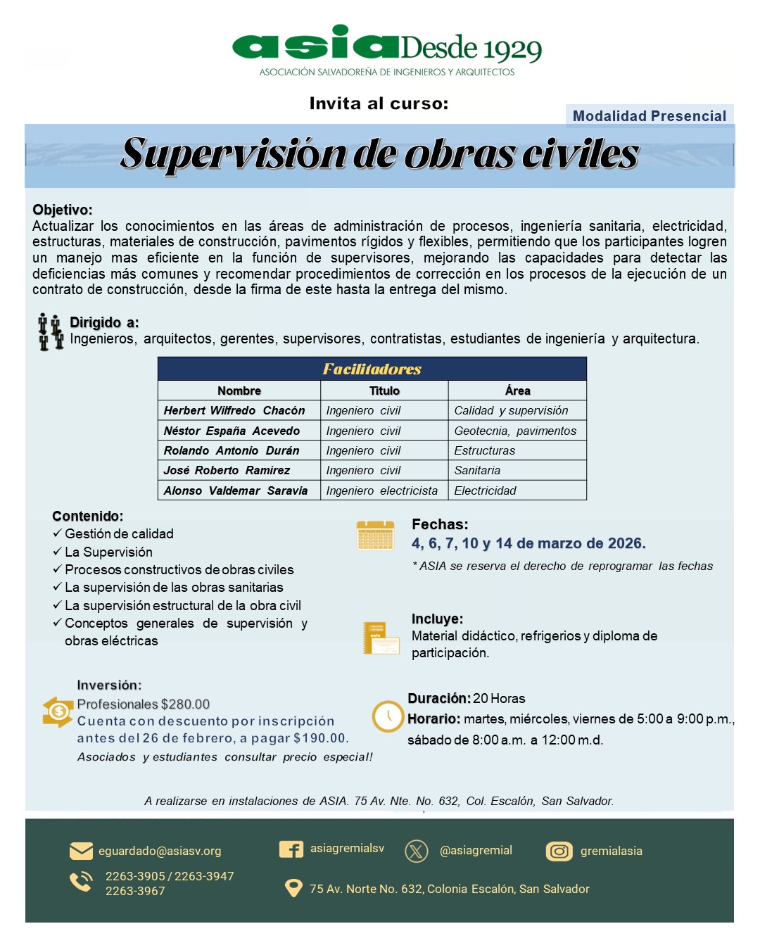 Cuenta con descuento por inscripción antes del 26 de febrero, a pagar $190.00